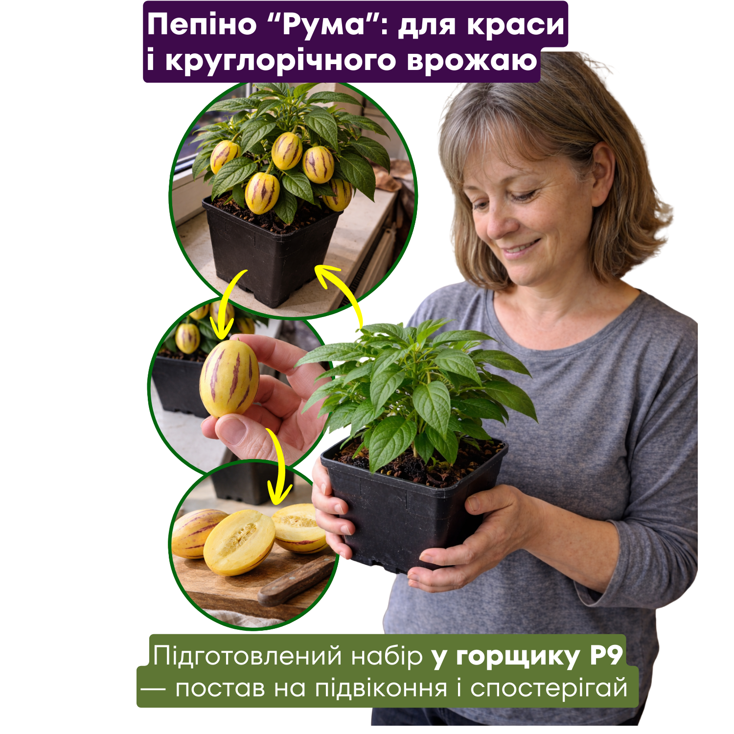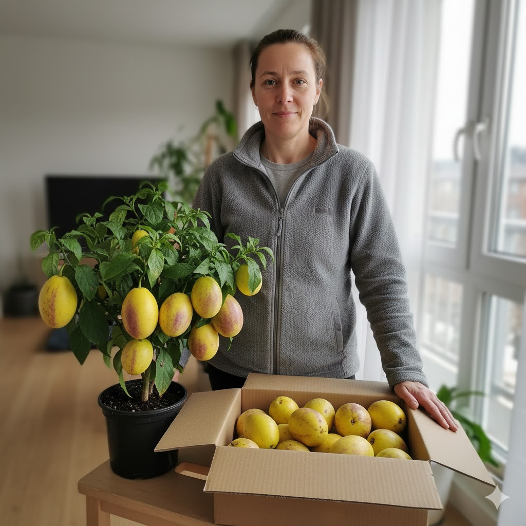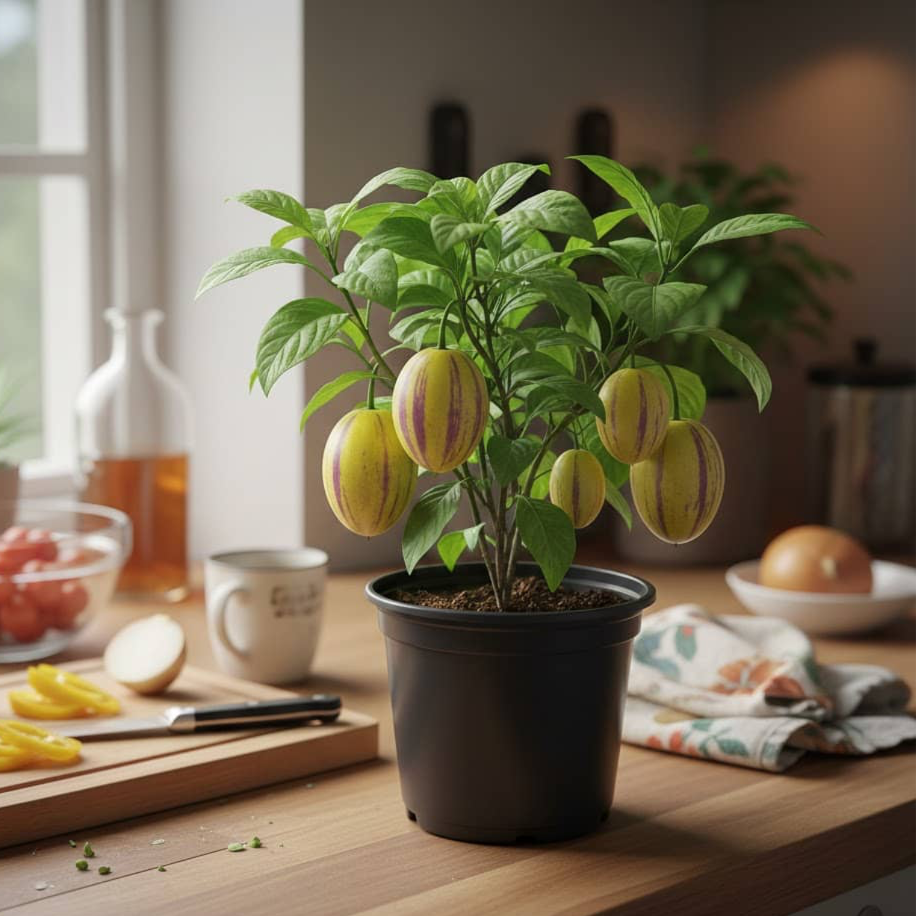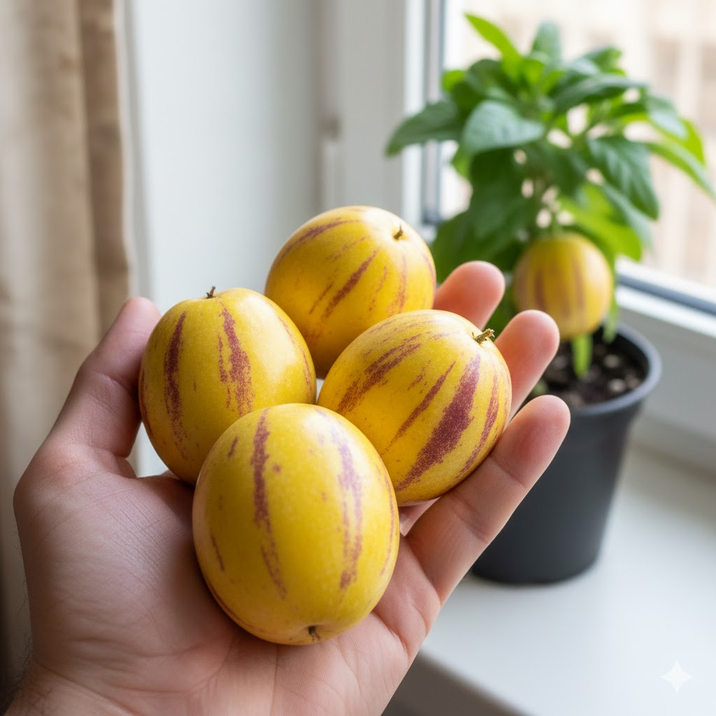 Чесно — не вірила, що пепіно може родити в квартирі. Але “Рума” здивувала. Перші плоди зняла ще минулого сезону, а цього року вже вдруге збираю. Стоїть на підвіконні, нічого складного не роблю — полив і світло. Плоди солодкі, реально смачні.